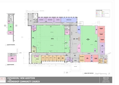 Welcome to the floor plans Let's look at the first-floor plan SD-03. This plan shows the existing sanctuary and the new sanctuary which will be at the same level. The current entrance will be renovated into a new wider vestibule to create a welcoming lobby.